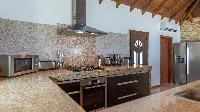 This luxury villa's four bedrooms feature a playful play on aesthetics, adorned with experimental colors that range from fuchsia to yellow green. Each bed is beautifully made with clean, crisp linens and soft, thick mattresses. The clean and spacious bathrooms sport large vanities and plenty of storage and shower space.